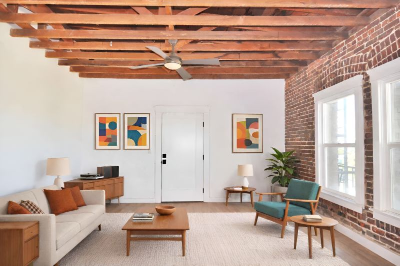 The Aesthetic: Tall ceilings anchored by dramatic wood beams and massive windows framed by original character brick.